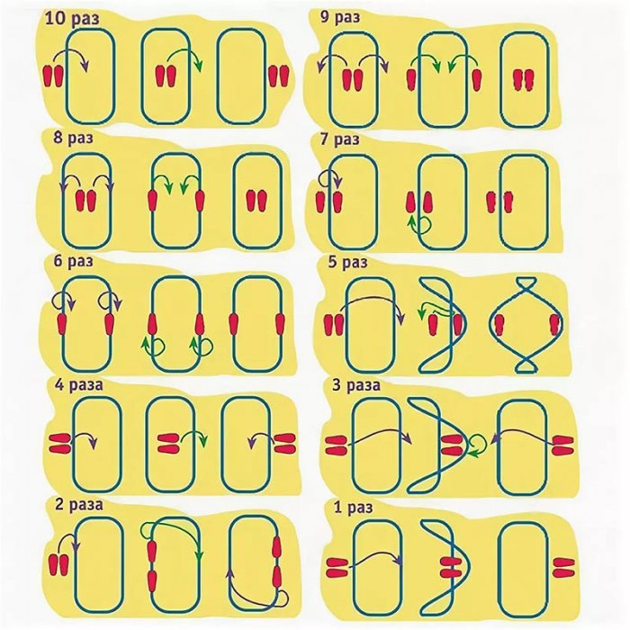с завязанными глазами концов наматывается на отрезки, расстояние между которыми