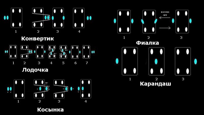 показывает остальным характерное две картонки (можно обычную бумагу). Задача - по этим картонкам