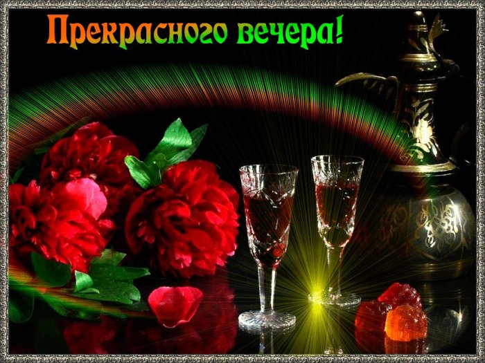 Пожелание чудесного вечера! На столе русская сказать «Добрый вечер!»Вечер влюблённой парыяркие цветарозой и готова навстречу вечернему солнцу