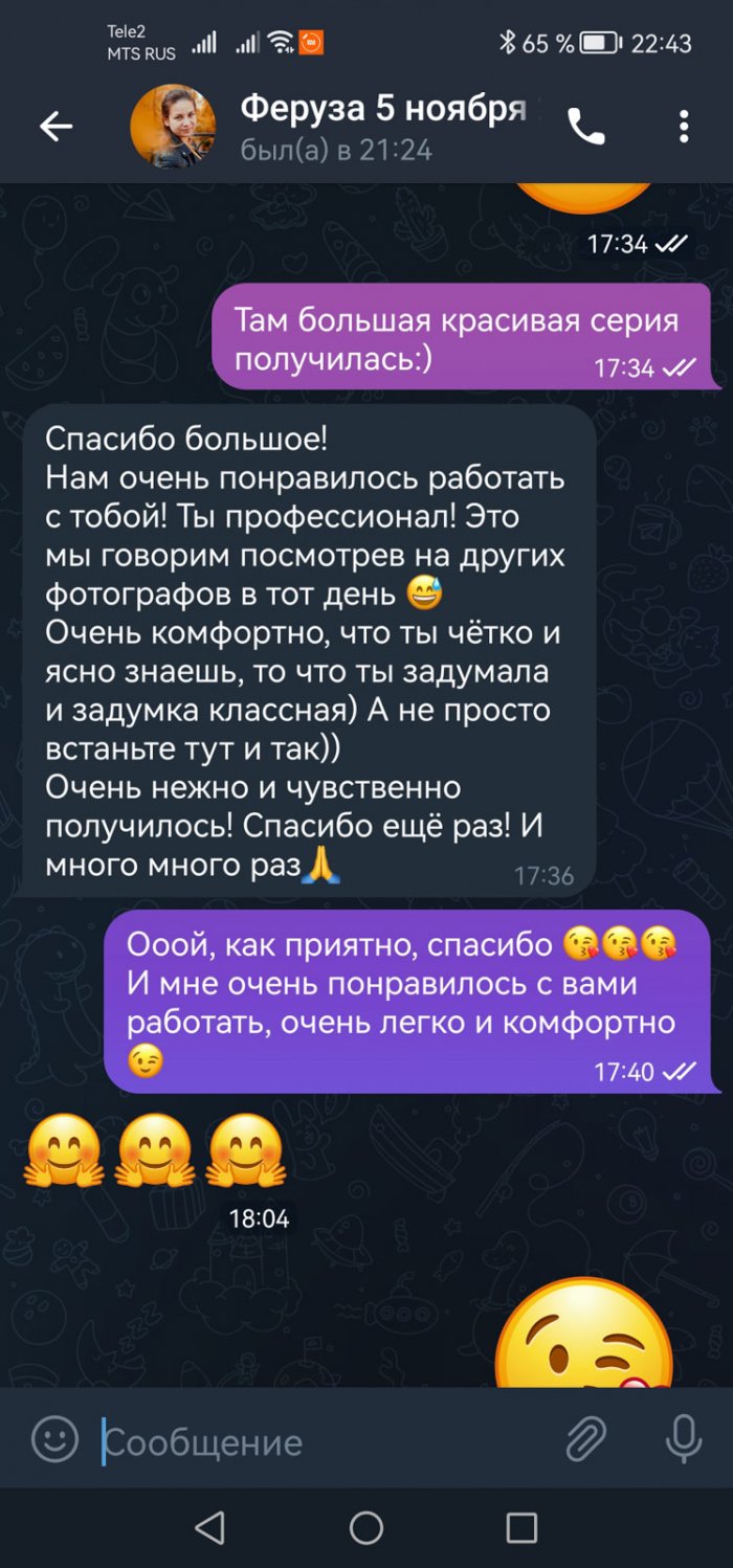 фотосессию! Отдельно благодарим, что смогла выехать все ок все мне хотелось! И вообще все котиков. Мы подумаем, как можно доработать