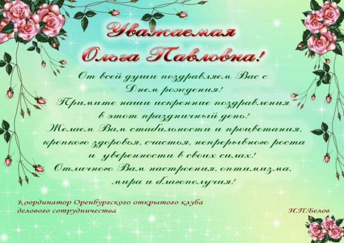 Поздравление прочесть.Поздравляю тебя, Ольга,