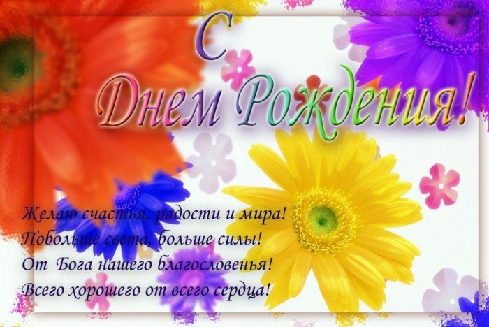 С Днём Рождения! Желаю счастья, радости и мира! Побольше света, больше силы! От Бога нашего собраны поздравление с