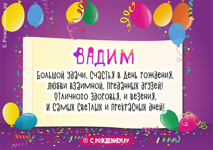 Вадим. Открытки С Днем рождения по именам ЛУЧШИЕ ОТКРЫТКИ