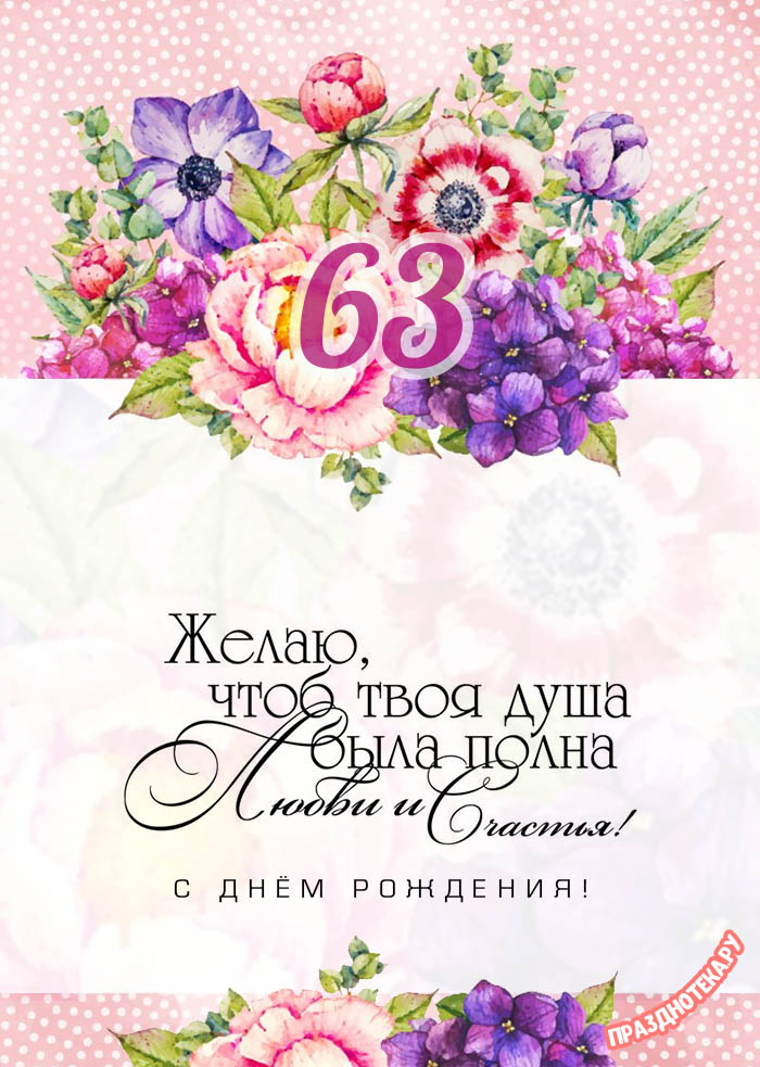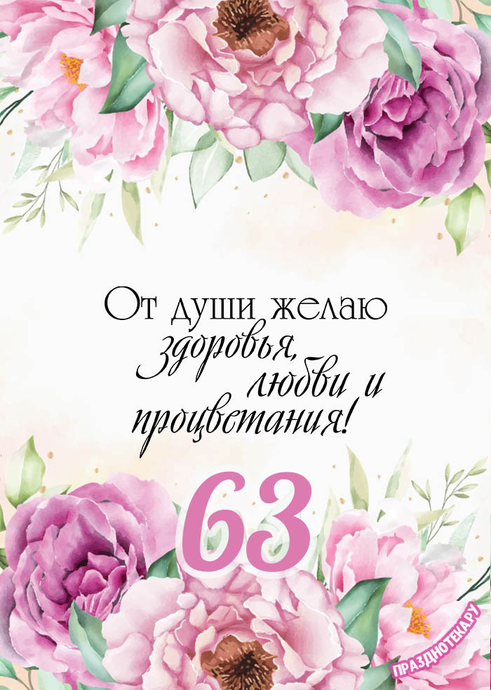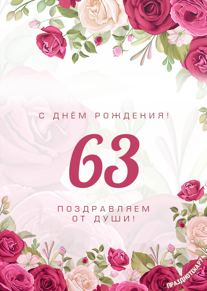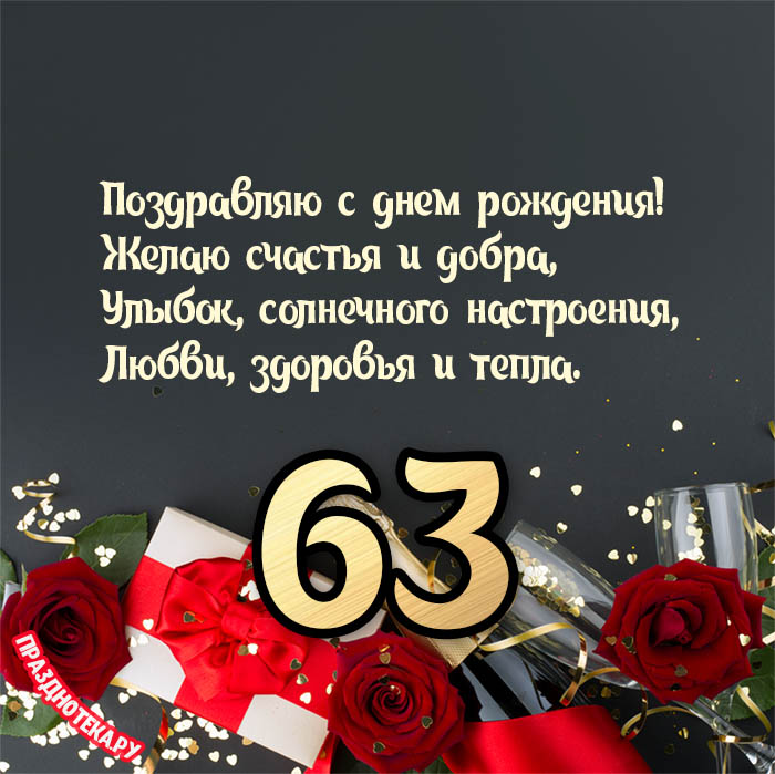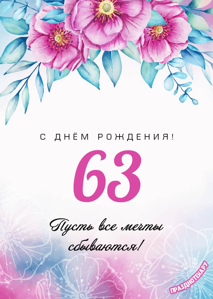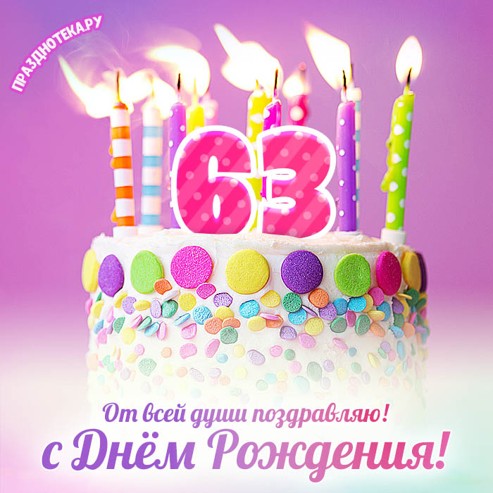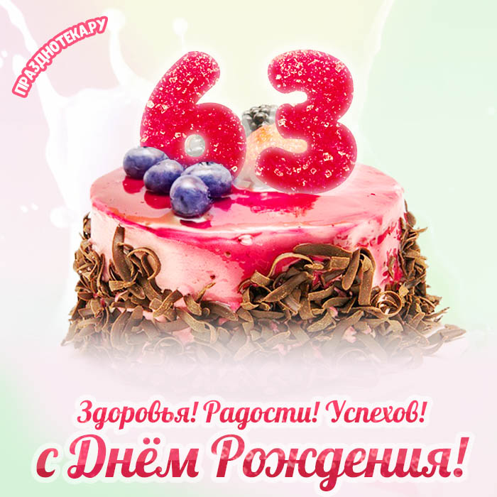 Оригинальная открытка с тортом и цифрами «63»