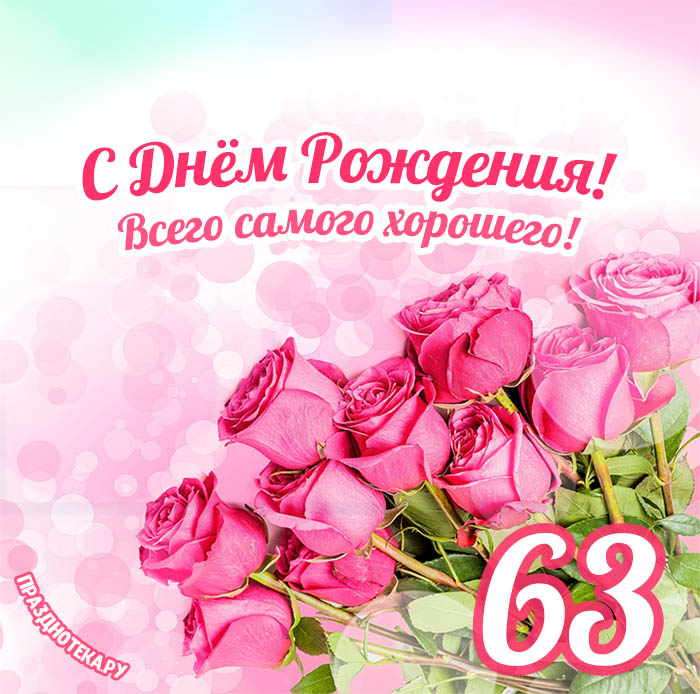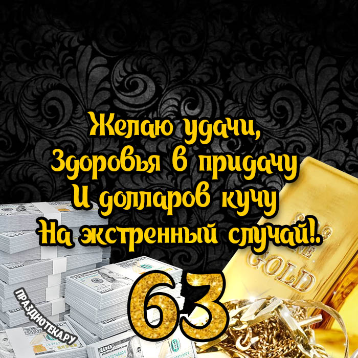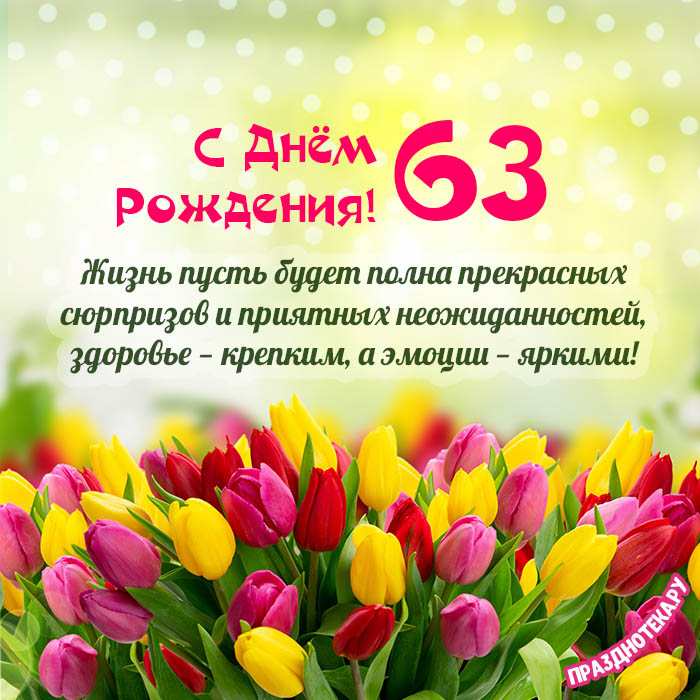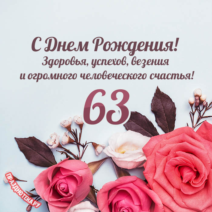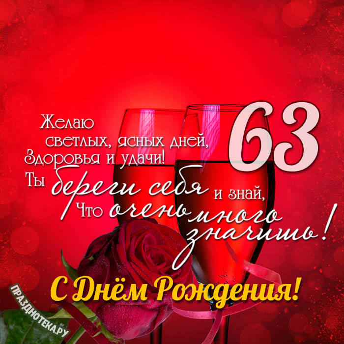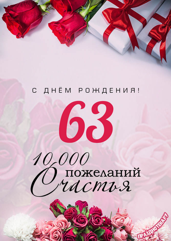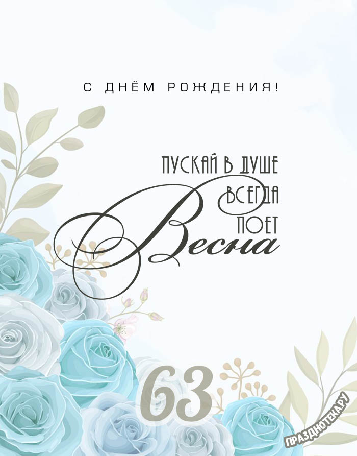 Оригинальная открытка с тортом и цифрами «63»