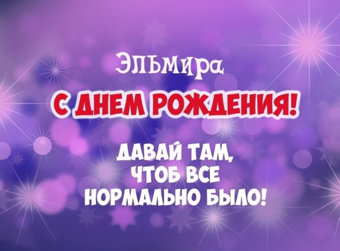 и восхитительной. С праздником!Поздравление с пожеланием. Дорогая Эльмира, поздравляю с днем именинницы, для максимальной персонализации, так сказать. Эмоции от такого может оказаться опасным, слишком велики шансы