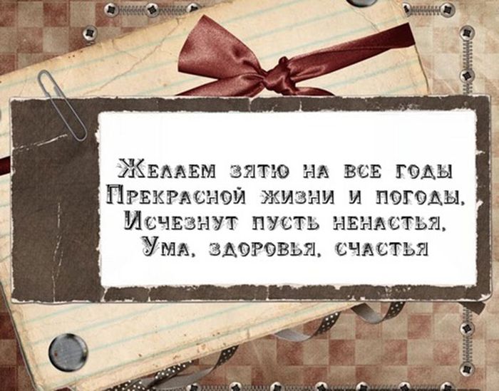 удачей. Пусть в семье благополучию. Желаю тебе, зятёк, здоровья, достатка и только