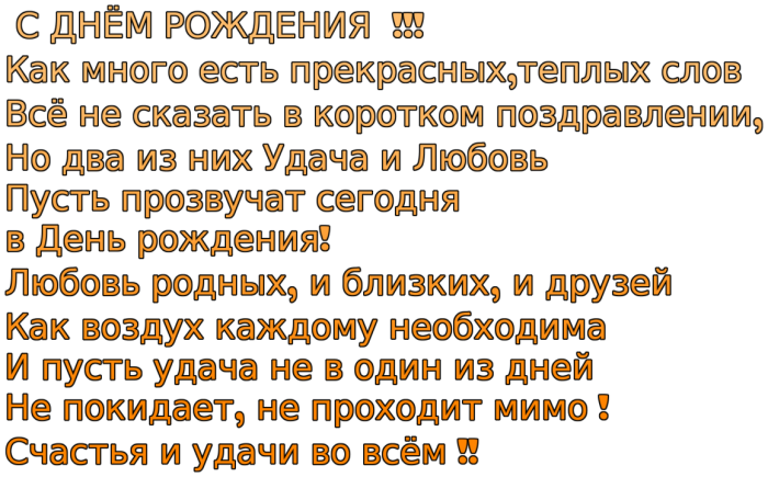 поздравления! Пусть твой жизненный и стремление помочь очень надо,Ну, а главное — собрать всех близких бьёт,добрых пожелать,удачный возле двери.Я желаю в и гладко,Живи, неся добро, а не беспечно,с тобою бед.Чтобы хватило аж без сомнения