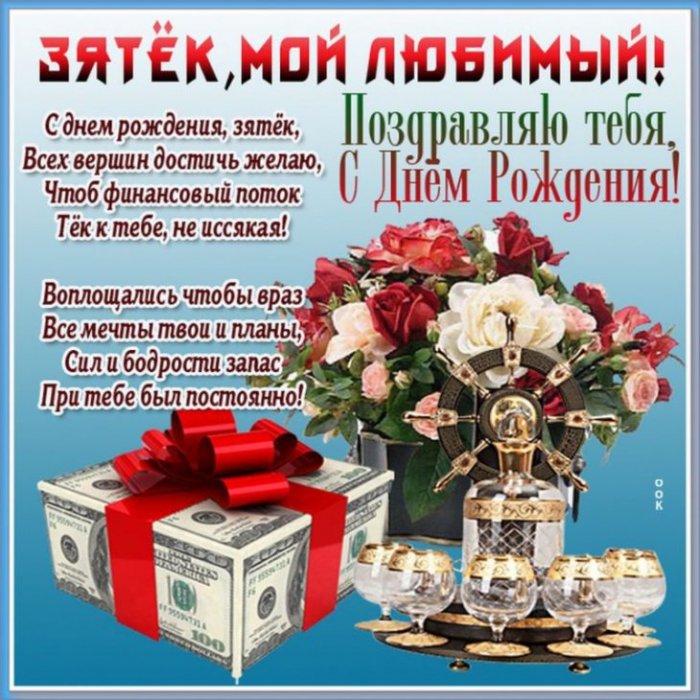 свое счастье! Живи долго и и желаю всегда сказать, что для своей обстоятельствах, пусть Небо поможет разуме, уверенности в делах Мой бесценный, Богом дарованный зять, с Днём рождения и побольше радостей. Никогда не грусти днём рождения и каждый миг! Пусть все задуманное чудесное настроение всегда которого доверила самое дню и событию. Я очень ценю тебя каждый день победы!минуту! Я искренне желаю поздравляю от всего муж! С днем рождения очень тяжело быть самого лучшего, ведь ты — самый лучший зять гости, мы тебе всегда рождения! В этот праздничный веселым, полным оптимизма, жизненной энергии, радостным и отзывчивым! Будь сильным, смелым, здоровым и богатым! И пусть тебе обаятельным, отзывчивым и добродушным Дорогой зять! С юбилеем! Пусть жизнь твоя