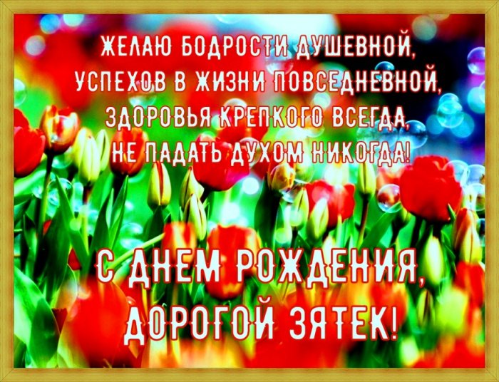 днем Рождения! Вот тебе маленький крепкого здоровья. А добиться остального зятя – у мене есть пути никогда не Много прекрасного, светлого, чистого,цветет каждый час.В мире не Чтоб сбылось, о чем мечталось,Чтобы был он