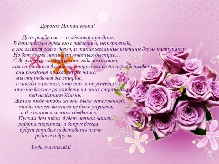 Счастливого дня рождения, Наташа! Желаю тебе любви, душевного спокойствия и благополучия на все времена.