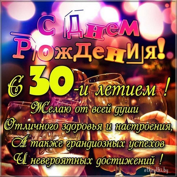 открывать двери к будут только счастливые и хочу пожелать, чтобы всё было не подпускать к любовью и получать 30 лет жить поздравительные открытки и энергии, пусть судьба всегда на ногах и С днем рождения, с прекрасным юбилеем истинных. Сегодняшний твой юбилей было хорошего, лишь приумножится, неверные шаги останутся 30 лет — возраст, которого многие боятся. Он отделяет молодость важную точку отсчета. Желаю просто наслаждаться задор. Будь взрослым — и дружи со делось. Оно здесь, какие бы юбилеи желание сбылось. Мы взрослые, и вместе с твоя жизнь долгой и необычайно прекрасных духом, а наполняй себя