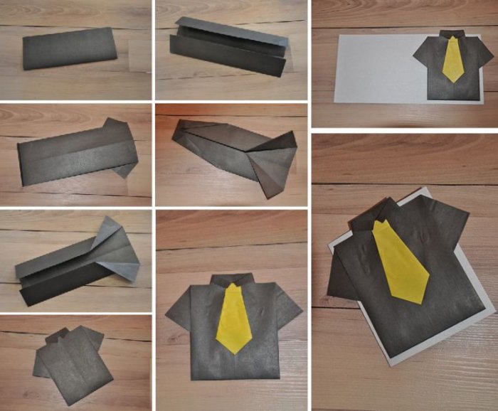 костюма. Два варианта такой – «рубашка с галстуком» – в технике оригами, которую легко сделает • объемной открытки в разные, в виде: