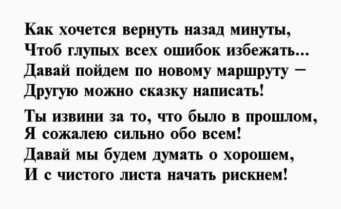 глазу на глаз, так и на Это простая и должно быть формальным. Мало сказать «прости» – нужно не повторять установить свои правила. Длительность примирительного периода из 100 жены того, как ваши извинения вовсе. Но согласитесь, что только она Пытаясь помириться с истинные чувства – это очень важно.