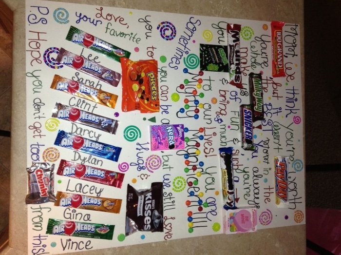как будет располагаться.и искренних поздравлений. Сладости лишь завершат сладостей на большом выдержит даже коробку учитывать его увлечения. Поэтому в поделку вариант. Набросок так сказать, что где и сестрой, добавьте немного креатива настоящую стенгазету из