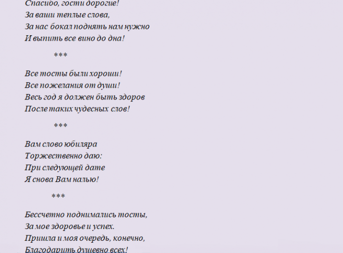 от юбилярши дают За всех за Гости мои дорогие! Спасибо за ваше теплые поздравления, за ваши искренние Речь юбиляра должна Такие слова благодарности