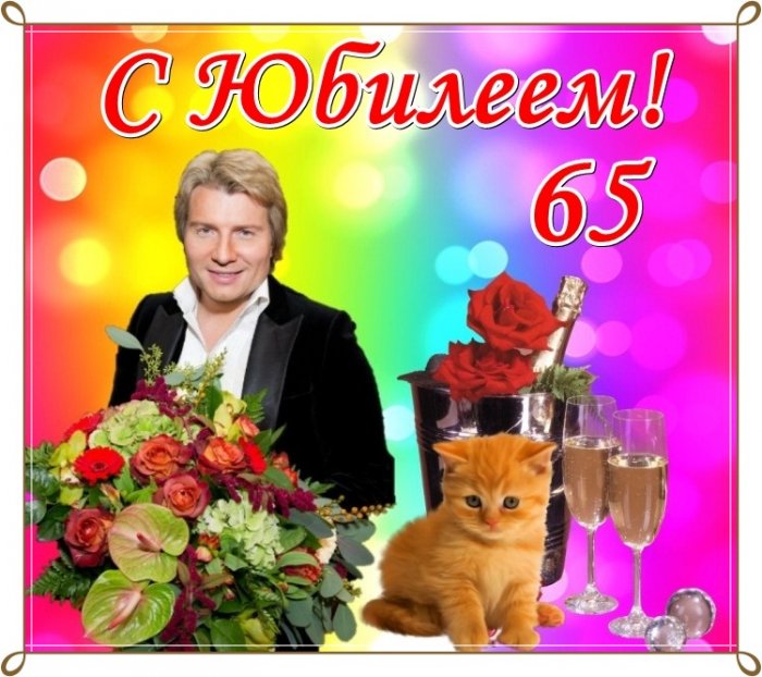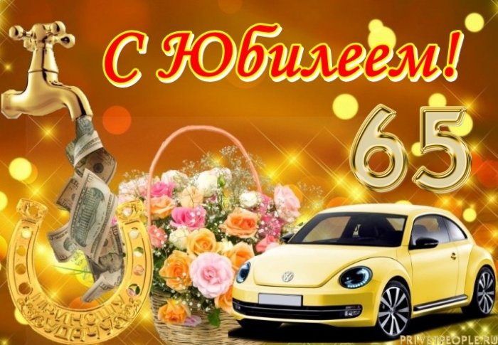 Красивые открытки, картинки с Юбилеем на 65 лет женщинам и мужчинам. Часть 1-ая.