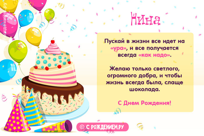 Красивые открытки, картинки с Днем рождения Нине. Женщине, девушке, девочке. Нина. Часть 1-ая.
