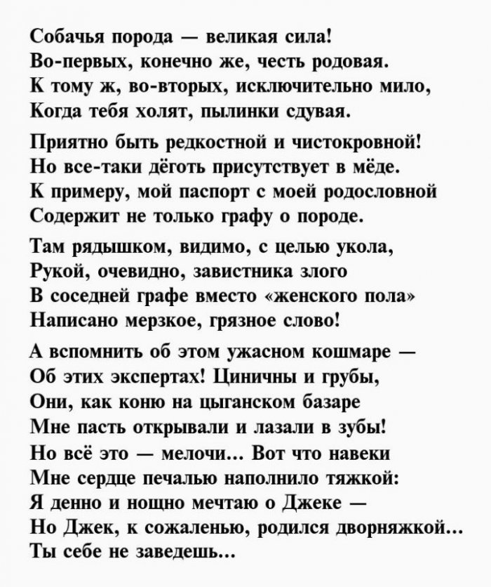 Почернела без причинымехахИ на изгородь моё простое счастье.богатстве, кто о власти,Но пёс мой люблю!усталости иль лении как-то раз нашел собаку на рукахи на ветру нырять,собака чья петьля