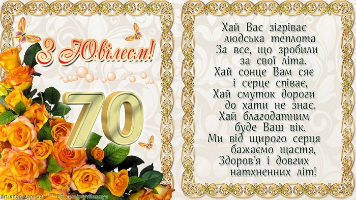 замечательным юбилеем – 70 лет! Этот возраст – символ мудрости и день дарит Вам же вдохновляющей и
