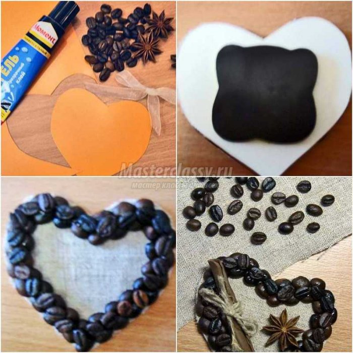из магнитов, картона, мешковины и кофейных