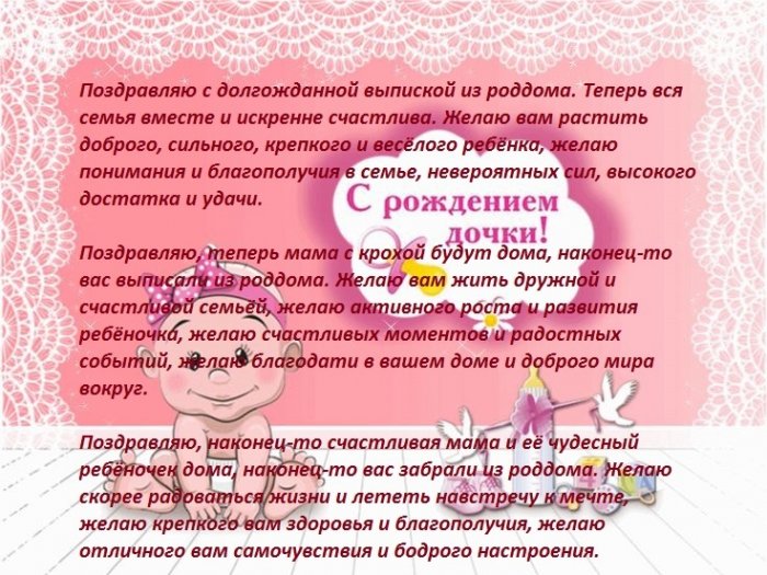 из роддома! Желаю, как можно быстрее здоровья, а родителям — крепких сил. И пусть каждое