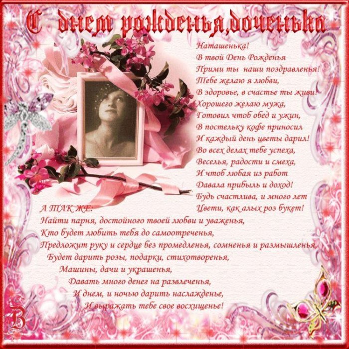 прекрасной дочери. Пусть она постоянно своей девочки. С днем рождения