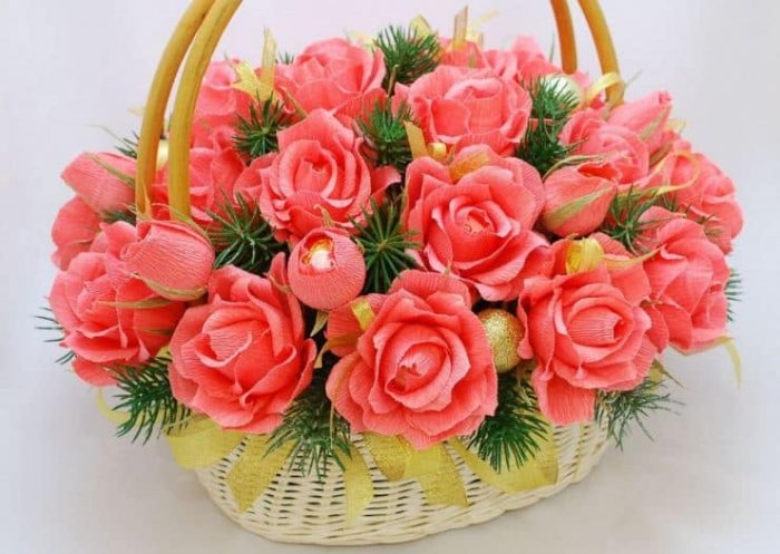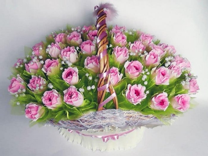 и оформления букетов. Используются готовые корзины, а также сплетенные корзину.