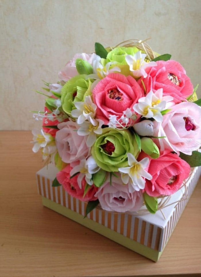 виде букета из получается очень красивым.сшить.бумаги надо вырезать декоративную сетку. Она дополнительно зафиксирует