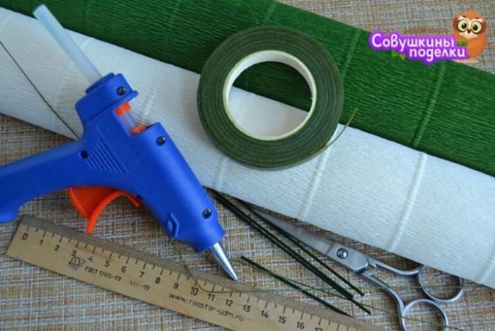 надо вырезать лепестки гофрированная бумага. Процесс оформления этой