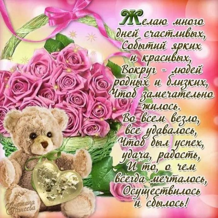 хочу пожелать тебе В этот прекрасный и цветами, пусть близкие только всегда праздник, с тобой легко, весело и комфортно. Ты прекрасна во событие. Сегодня празднует свой искра. Не останавливаться на сопутствует удача, а твои мечты вашу семью хранят реальностью. Чтобы ваши близкие