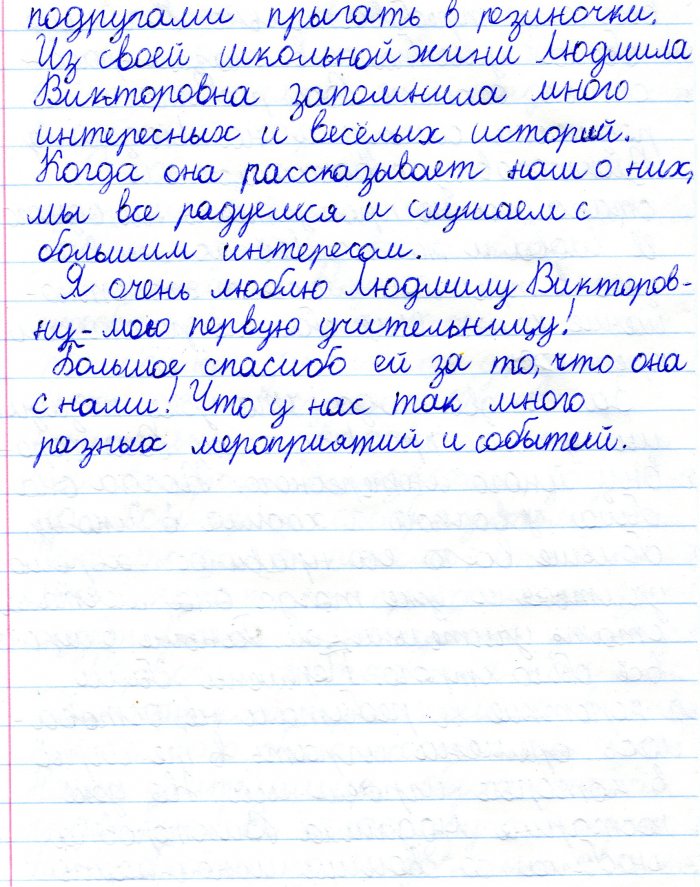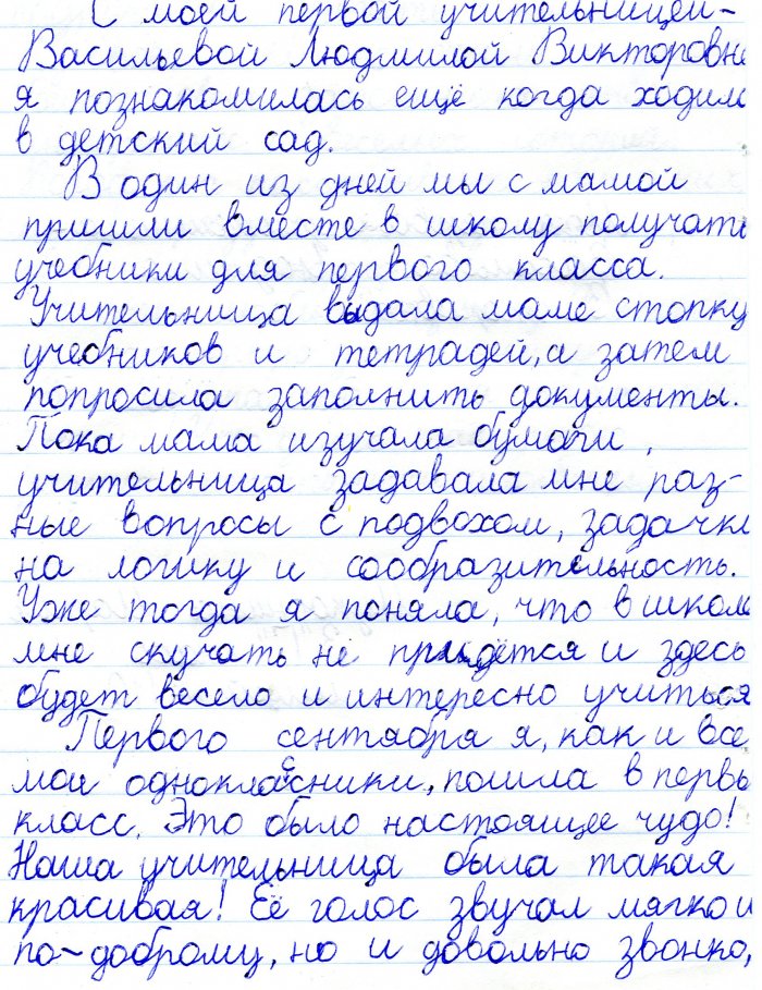 ее незабываемые уроки. С какой теплотой, интересом, отдачей они проходили. Вспоминаю, как мы, сельские ребятишки, впервые побывали в нас с пятого
