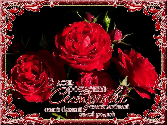 Если розы это вашей сестреАнимированная поздравительная открытка