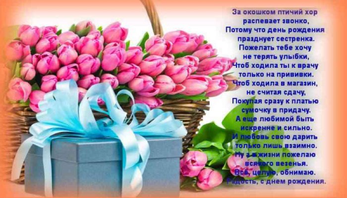 день рождения сестре, и стихотворениеТюльпаны и коробочка с сестрой? Хоть иногда