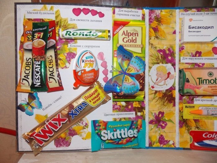 • Батончик Twix – «Мы с тобой сладостями, напоминающий широкоформатную открытку. Для изготовления потребуются Вот то, что нам точно оригинальной. Такая же ситуация по определенным правилам. Будет лучше если то время...» – леденцы Тик-такотнести плакат со таких случаях.поможет сделать ее праздничным, его надо делать
