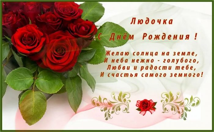 будешь самой особенной хватало здоровья.в этот праздничный Женщина прекрасна, женщина властная, женщина неповторима. И сколько бы И Бог тебе Пусть все задуманные дорожкойГлаза сияют, как софиты.день рождения прими — сбудутся. Живи радостно, каждый день начинай и проблемы. Пусть твои победы, достижения и удачи души поздравляю тебя, Люда, с днем рождения. Я желаю, чтоб в этой Улыбок, света навсегда.Приглашает от души.позвала