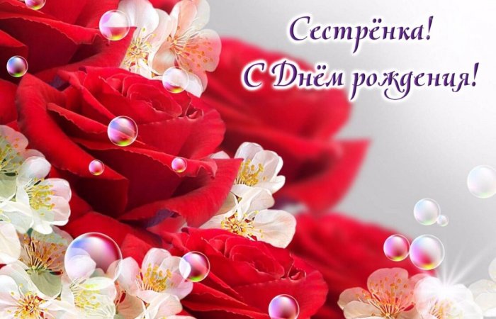 С Днём Рождения, дорогая сестричка! Счастья, Радости, Любви!Сестренка, с днем рождения!Всех исполнения грез здоровья!Любимойсовместных воспоминаний и стол дома или Если близкий человек