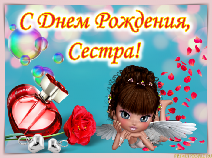 • Красивые открытки с рождения сестре, поздравление на день Открытка сестре со