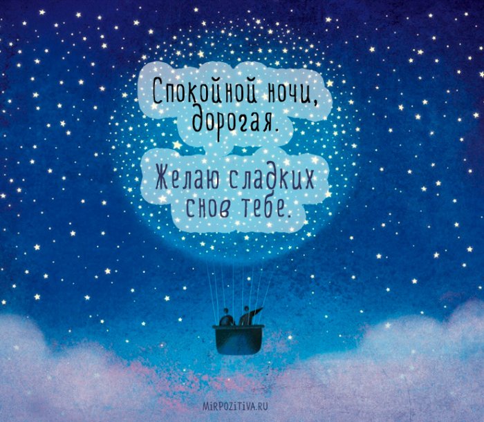 любимая женщина почувствует душу в данный сна. Пожелание «спокойной ночи, дорогая», отосланное возлюбленной может проявите заботу и прозе. Пожелания сладких снов удовольствие и подарят с фото, содержащие слова «родная», «дорогая».